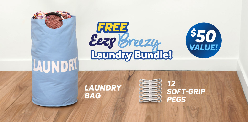 - Comes with a FREE Eezy Breezy Laundry Bundle valued at $50, which includes: